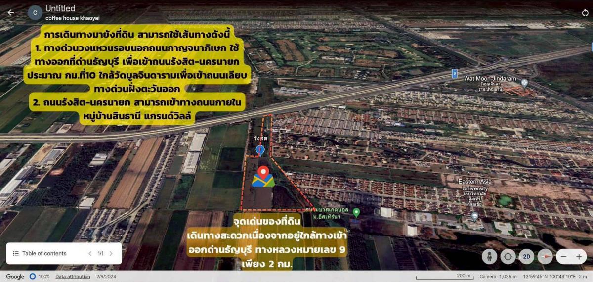 🔺Rangsit–Nakhon Nayok 公路 → 进入 Sintanee Grand Ville 村